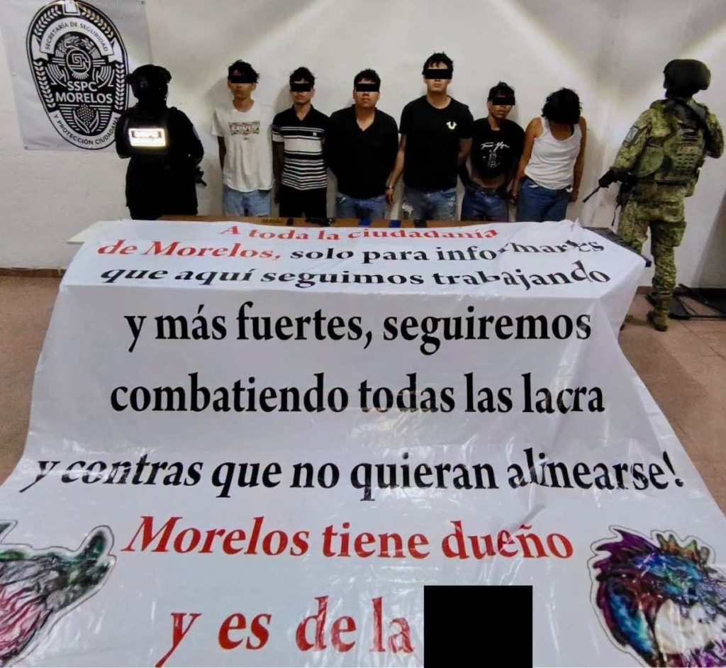 Durante un operativo interinstitucional en la carretera Jojutla–Yautepec, elementos de seguridad detuvieron a cinco hombres y una mujer mientras colocaban una lona con mensajes de amenaza en las letras turísticas de Huatecalco. Los detenidos, cuyas edades oscilan entre los 18 y 22 años, fueron sorprendidos en flagrancia la madrugada del viernes.